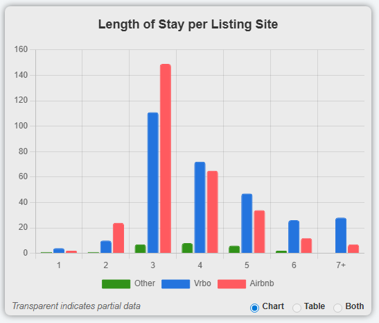 Sample Charts Shows gross revenue per year. Current and future years use a different color to indicate data is partial and may increase. Shows the breakdown in income between different listing sites. Helps you understand where income comes from. Occupancy per month helps you set appropriate rates to balance rates vs. occupancy How many days do guests book in advance. Helps you set pricing based on demand, and know when to lower rates. Illustrates the relationship between Revenue, ADR and Occupancy over time Shows how Length-Of-Stay differs between various Listing Sites